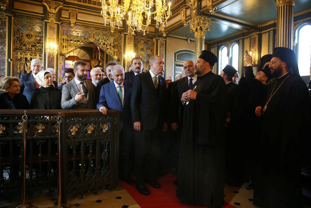 Παρόντες επίσης ο πρόεδρος της Τουρκίας Ρετζέπ Ταγίπ Ερντογάν αλλά και ο πρωθυπουργός της χώρας, Μπιναλί Γιλντιρίμ. Μάλιστα, οι δυο άνδρες ξεναγήθηκαν στο Ναό.