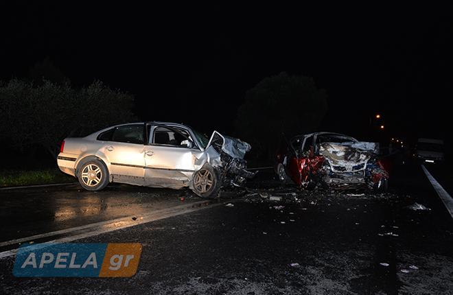 Δύο αυτοκίνητα, αντιθέτως κινούμενα, συγκρούστηκαν μετωπικά με αποτέλεσμα να χάσουν τη ζωή τους ένας 80χρονος και ένας 49χρονος.