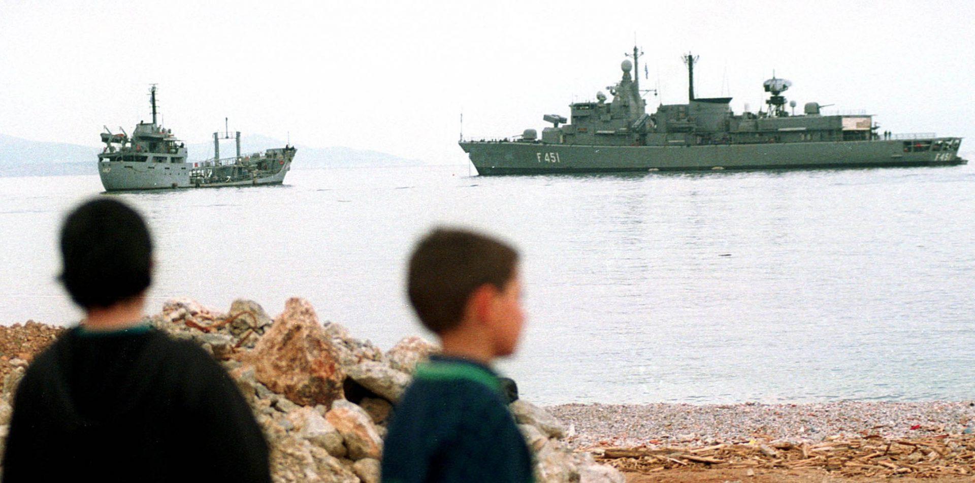 28 Ιανουαρίου 1996: Ανδρες του περιπολικού του Πολεμικού Ναυτικού «Αντωνίου» κατεβάζουν την τουρκική σημαία και υψώνουν πάλι την ελληνική και το βράδυ εκείνης της ημέρας Έλληνες βατραχάνθρωποι αποβιβάζονται στη Μεγάλη Ίμια.