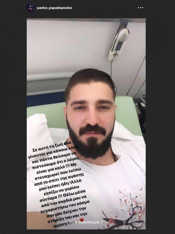 Λίγο αργότερα όμως δημοσίευσε ακόμα μια φωτογραφία, στην οποία πόζαρε κρατώντας μια τεράστια ανθοδέσμη στην αγκαλιά του. «Θέλω να πω ένα τεράστιο ευχαριστώ την παραγωγή που σε αυτή τη δύσκολη στιγμή δεν με ξέχασε και μου έδειξαν την αγάπη τους. Είμαι ευγνώμων για όλα και ελπίζω να είμαι πολύ σύντομα κοντά σας. Εύχομαι υγεία και ευτυχία σε όλο τον κόσμο», ήταν το επόμενο μήνυμά του. Και παρόλο που ο Παυλος δεν θέλησε να αποκαλύψει το λόγο που νοσηλεύεται, το συγκεκριμένο στιγμιότυπο «πρόδωσε’ πως αντιμετωπίζει κάποιο πρόβλημα με το πόδι του.