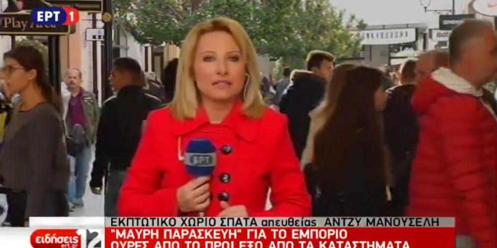 Στο live που παρακολουθήσαμε μάλιστα, η ρεπόρτερ Άντζυ Μανουσέλλη συνδέθηκε με το στούντιο σε απευθείας σύνδεση από το εκπτωτικό χωριό της Αττικής για να δώσει το κλίμα της αγοραστικής κίνησης.