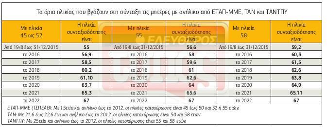 Τα όρια ηλικίας που βγάζουν στη σύνταξη τις μητέρες με ανήλικο, από ΕΤΑΠ-ΜΜΕ, ΤΑΝ και ΤΑΝΤΠΥ.