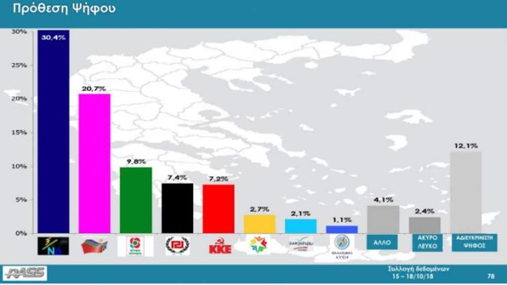 Η αδιευκρίνιστη ψήφος ανέρχεται στο 12,1% των ερωτηθέντων.