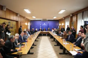 Οι εξελίξεις στη Μέση Ανατολή κυριάρχησαν στη συνάντηση του Κυριάκου Μητσοτάκη με τον Αντιπρόεδρο της Παλαιστίνης Χουσείν αλ – Σέιχ στο Μέγαρο Μαξίμου.