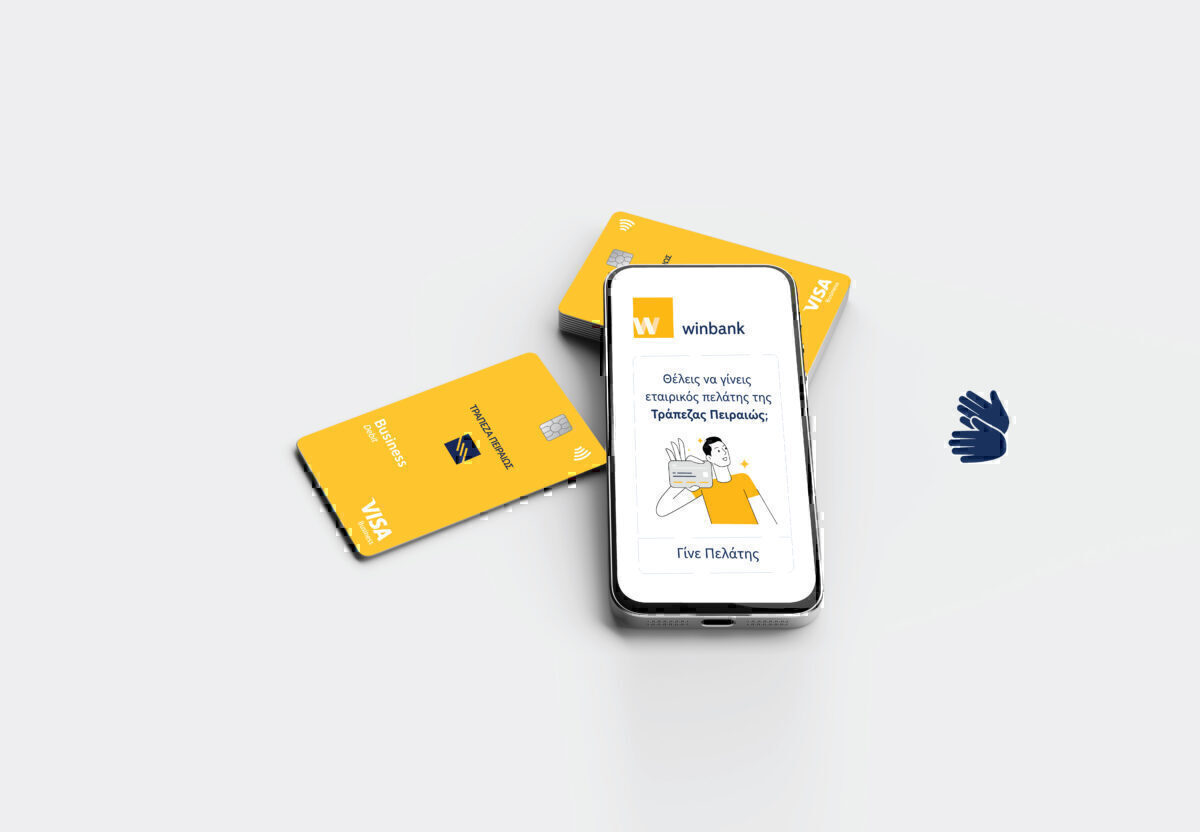 Mε τη χρήση της υπηρεσίας Digital Onboarding, ο νέος επαγγελματίας πελάτης αποκτά επαγγελματικό λογαριασμό όψεως (εμπορικό λογαριασμό), επαγγελματική χρεωστική κάρτα (business debit) και πρόσβαση στα κανάλια ψηφιακής εξυπηρέτησης της winbank.
