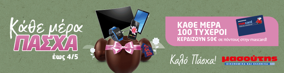 Η εταιρεία Μασούτης, πιστή στη δέσμευσή της να προσφέρει σε κάθε οικογένεια και σε κάθε περίσταση, σας δίνει κάθε μέρα την ευκαιρία να κερδίζετε, κάνοντας τις αγορές σας από οποιοδήποτε κατάστημα Μασούτης αλλά και από το e-shop στο www.masoutis.gr από 15 Απριλίου έως 4 Μαΐου 2024.