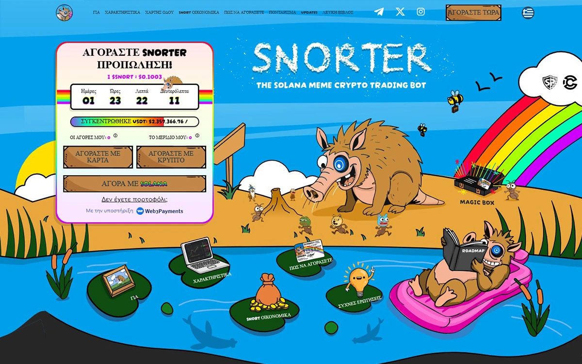 Το Telegram bot που έχει γίνει εργαλείο και σταθμός για sniping, copy-trading και staking. Το Snorter Bot ($SNORT) χρησιμοποιείται για πρόσβαση σε premium λειτουργίες, μειωμένα fees και staking rewards. Με τη μεγάλη στροφή των επενδυτών σε bots και αυτοματοποίηση των συναλλαγών, το $SNORT κερδίζει όλο και περισσότερη υποστήριξη.