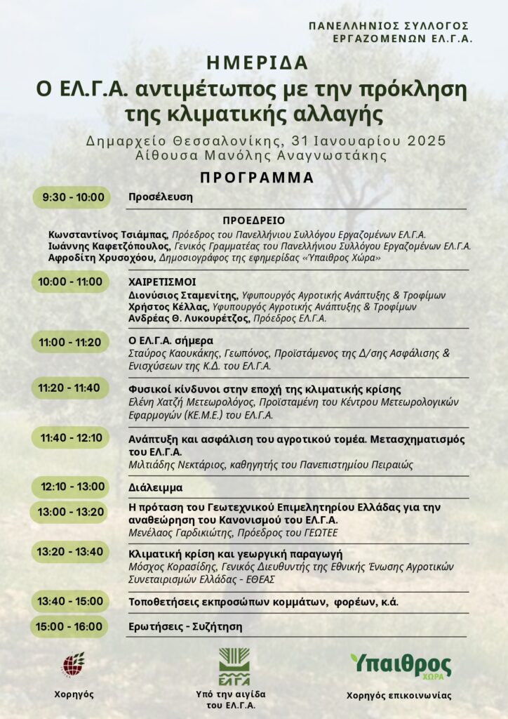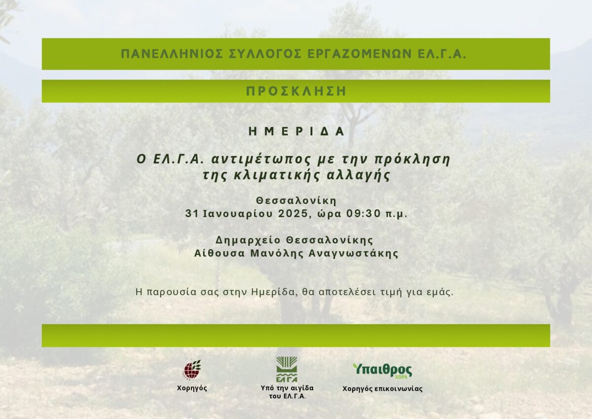 Η ημερίδα τελεί υπό την αιγίδα του ΕΛ.Γ.Α.