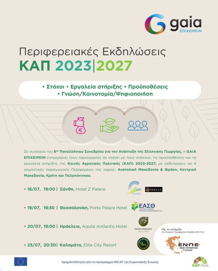 Η δράση τελεί υπό την αιγίδα της Ένωσης Περιφερειών Ελλάδος (ΕΝ.Π.Ε.), ενώ υποστηρίζεται από τη Γενική Διεύθυνση Γεωργίας και Ανάπτυξης της Υπαίθρου της Ευρωπαϊκής Επιτροπής, στο πλαίσιο του έργου ενημερωτικών δράσεων για την Κοινή Αγροτική Πολιτική (ΚΑΠ) “CAP2Fork – Προς ένα βιώσιμο σύστημα τροφίμων από τον αγρότη στον καταναλωτή”, το οποίο υλοποιεί η GAIA EΠΙΧΕΙΡΕΙΝ κατά το διάστημα 2021-2022.