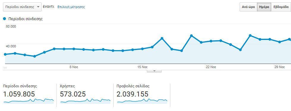 Το EleftherosTypos.gr τον μήνα Νοέμβριο επισκέφτηκαν περισσότεροι από 570.000 μοναδικοί χρήστες, πάνω από 1.000.000 φορές, διαβάζοντας τα άρθρα μας συνολικά 2.000.000 φορές!