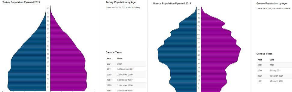 Σήμερα, ο ελληνικός πληθυσμός ανέρχεται στα 10.500.000 όταν οι Τούρκοι έχουν ξεπεράσει τα 80.000.000. Οι αριθμοί αυτοί, όμως, δεν λένε όλη την αλήθεια. Αυτή κρύβεται στις λεπτομέρειες και αυτή μας λέει πως ο μέσος όρος στην γειτονική χώρα είναι τα 25 χρόνια την ώρα που στην Ελλάδα είναι πάνω από 45!