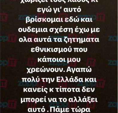 Όπως γράφτηκε χαρακτηριστικά κάπου στο Twitter: Δεν παραδέχεται ότι είναι Αλβανίδα, μας ενοχλεί. Το παραδέχεται και νιώθει περήφανη γι΄αυτό, πάλι μας ενοχλεί!
