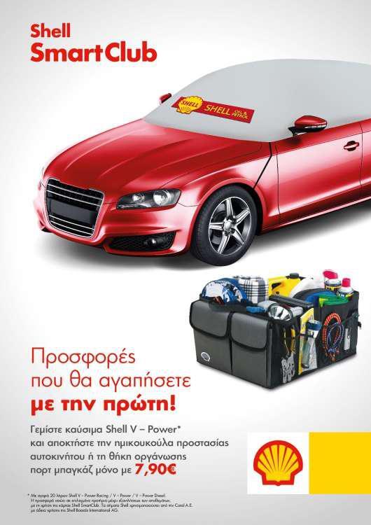 Συγκεκριμένα, κάθε φορά που κάποιος καταναλωτής ανεφοδιάζεται με τουλάχιστον 20 λίτρα καυσίμων Shell V-Power, Shell V-Power Racing & Shell V-Power Diesel μπορεί να αποκτήσει μια ημικουκούλα προστασίας αυτοκινήτου ή μία θήκη οργάνωσης πορτ μπαγκάζ με επιπλέον χρέωση 7,90€.