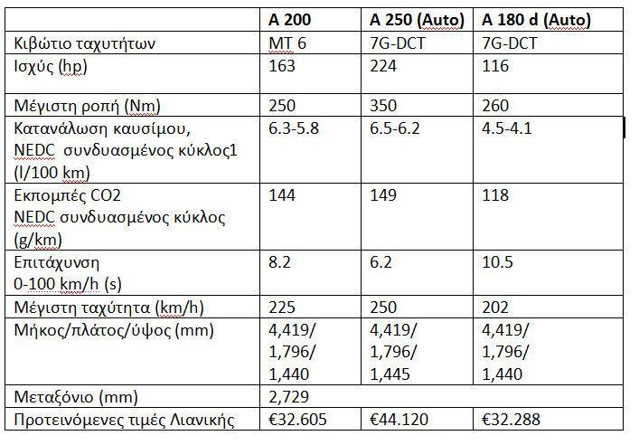 Ωστόσο η λίστα των παραγγελιών έχει ανοίξει για τρία μοντέλα (A200, A250 Auto και Α180 d Auto) με τιμή εκκίνησης λίγο πιο πάνω από τα 32.000 ευρώ. Η νέα A-Class επανακαθορίζει την έννοια της σύγχρονης πολυτέλειας στην κατηγορία των premium hatchback με ριζοσπαστικό εσωτερικό σχεδιασμό και πρωτοποριακή τεχνολογία.