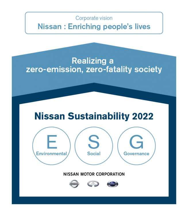 Είναι η πρώτη φορά που η Nissan ανακοινώνει ένα ολοκληρωμένο σχέδιο βιωσιμότητας, το οποίο συγκεντρώνει όλες τις πτυχές των περιβαλλοντικών, κοινωνικών και διακυβερνητικών πρωτοβουλιών της, με μια ενιαία προσέγγιση.