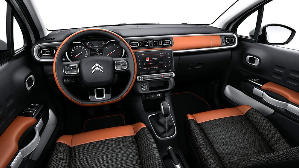 Επιλογές παραμετροποίησης προσφέρονται και στον εσωτερικό διάκοσμο, καθώς ο υποψήφιος αγοραστής C3 μπορεί να επιλέξει μεταξύ 4 χρωματικών προτάσεων στην διακοσμητική λωρίδα του ταμπλό και αρκετών τύπων στις επενδύσεις των θυρών και των καθισμάτων. Γενικώς υπάρχουν τρία πακέτα εξοπλισμού (Live-Feel-Shine) με το βασικό να προσφέρει εκτός των άλλων, ηλεκτρονικό σύστημα ευστάθειας ESP, σύστημα υποβοήθησης εκκίνησης σε ανηφόρα (Hill Assist), cruise control, 6 αερόσακους, κεντρικό κλείδωμα με τηλεχειρισμό, κλιματισμό, ηχοσύστημα με 4 ηχεία και διασύνδεση με Bluetooth, ατσάλινες ζάντες 15 ιντσών κ.ά.