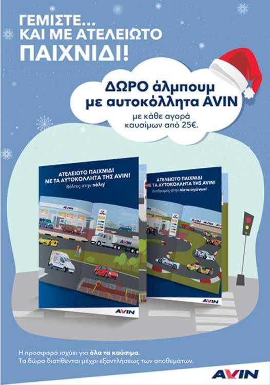 Επιπρόσθετα, κάθε οδηγός που επιλέγει τα πρατήρια καυσίμων ΑVIN για τον ανεφοδιασμό του οχήματός του, θα έχει την δυνατότητα να αποκτήσει ένα άλμπουμ με αυτοκόλλητα AVIN, με αγορά καυσίμων από 25 ευρώ. Οι μικροί φίλοι θα μπορούν να επιλέξουν ανάμεσα σε δύο θεματικά άλμπουμ, είτε για βόλτες στην πόλη, είτε για διαδρομές στην πίστα, με 12 αυτοκόλλητα πολλαπλής χρήσης. Η προσφορά ισχύει για όλα τα καύσιμα, μέχρι εξαντλήσεως των αποθεμάτων.