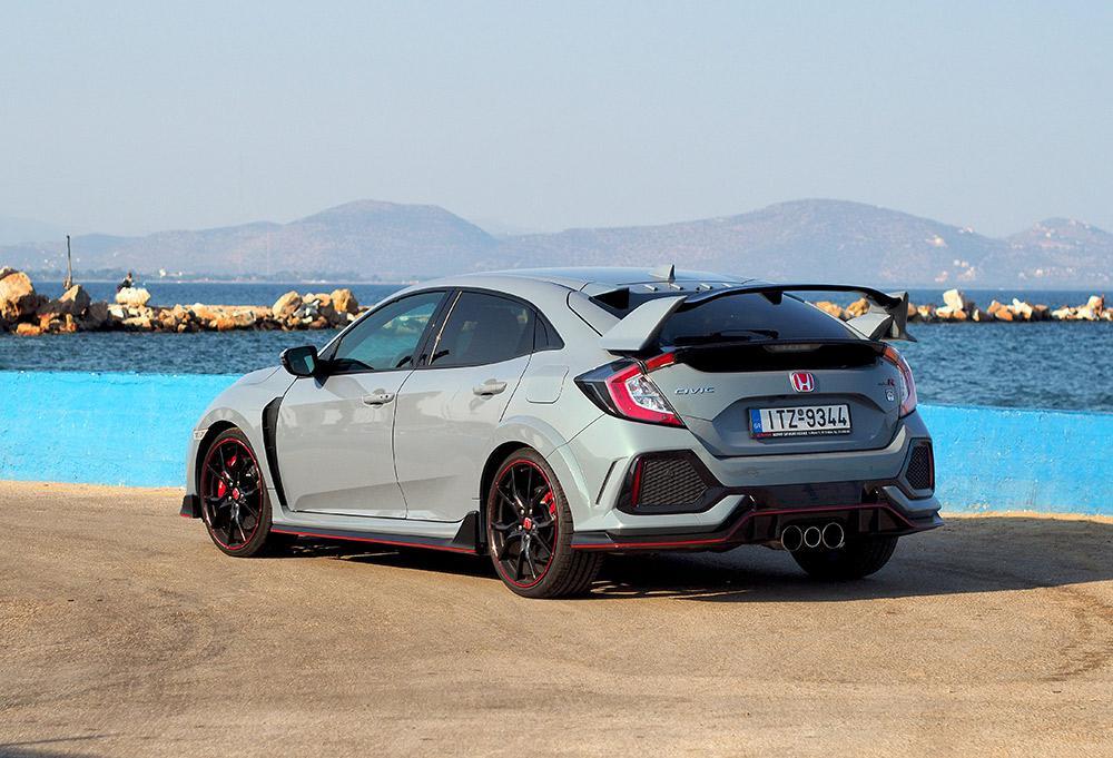 Ακόμη και μέσα από τα μάτια του πιο δεκτικού παρατηρητή, αυτό που βλέπουμε έρχεται σε ευθεία αισθητική αντιπαράθεση με τα αδιατάρακτα και εύληπτα σχήματα που κυκλοφορούν εκεί έξω. Στο Civic Type R ακολουθούνται πιστά οι οδηγίες που περιέχονται στο εγχειρίδιο περί επιθετικής σχεδίασης. Και στερεοτυπικά, υπάρχει μια τεράστια αεροτομή βγαλμένη από τα παλιά, παρέα με δεκάδες ακόμη ιδιοτυπίες. Και όλα μαζί μας κάνουν ένα μικρό στρατό που μάχεται υπέρ της οδηγικής τελειότητας. Επιτυχώς.