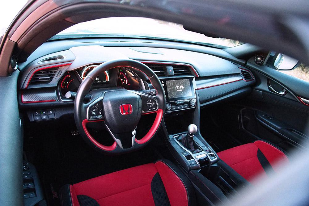 Θέλουν οι αριθμοί να κρυφτούν και η χαρά δεν τους αφήνει. Aκόμη κι αν μιλάμε για ένα επικοινωνιακό τερτίπι, μια υποχρέωση της μάρκας, ένα γραμμάτιο που πρέπει να εξοφληθεί καταβάλλοντας ντουζίνες ελαστικών και λίτρων καύσιμου στον μαϊντανό -εσχάτως- των αυτοκινητοδρομίων, το Nurburgring, επτά δευτερόλεπτα «κάτω», είναι πάρα πολλά, έστω, έναντι του ίδιου σου, προηγούμενου εαυτού. Πέραν των 10 επιπλέον ίππων που προστέθηκαν στους 300 του μοντέλου που μας χαιρέτησε με δόξα και τιμή και των 5,8 δευτερολέπτων που χρειάζεται για την ταχύτητα των 100 χλμ./ώρα, έχουμε 16 κιλά λιγότερα στο πλαίσιο, αλλά και κατά 38% αυξημένη δυσκαμψία. Η μικρομετρική ακρίβεια του Type R, οφείλεται -μεταξύ άλλων- στο εύρωστο σασί, που παραμένει ανεπηρέαστο απ’ οτιδήποτε. Ακόμη και από το ανενδοίαστο κοπάνημα στα κερμπς μιας πίστας, πολλώ δεν από τη φόρτισή του σε ποταπές στροφές και τις διενέξεις του με κακοτεχνίες δρόμων.