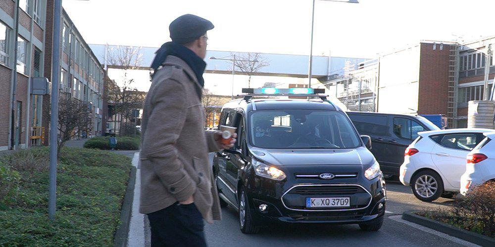 Για να εξασφαλίσει όσο το δυνατόν πιο ρεαλιστικές συνθήκες δοκιμών, η εταιρεία χρησιμοποίησε ένα Transit Connect, τοποθετώντας στο εσωτερικό του ένα ειδικά διαμορφωμένο κάθισμα που «κρύβει» τον οδηγό. Με το αυτοκίνητο σχεδιασμένο για να μοιάζει με αυτόνομο όχημα, αλλά με πραγματικό οδηγό κρυμμένο στο εμπρός κάθισμα, οι δοκιμαστές μπόρεσαν να καταγράψουν τις αντιδράσεις των περαστικών την ώρα που διάφορα οπτικά σήματα σε λευκό, πορφυρό ή γαλάζιο χρώμα εμφανίζονταν σε μία φωτεινή μπάρα στην οροφή του αυτοκινήτου, υποδηλώνοντας τις προθέσεις του.