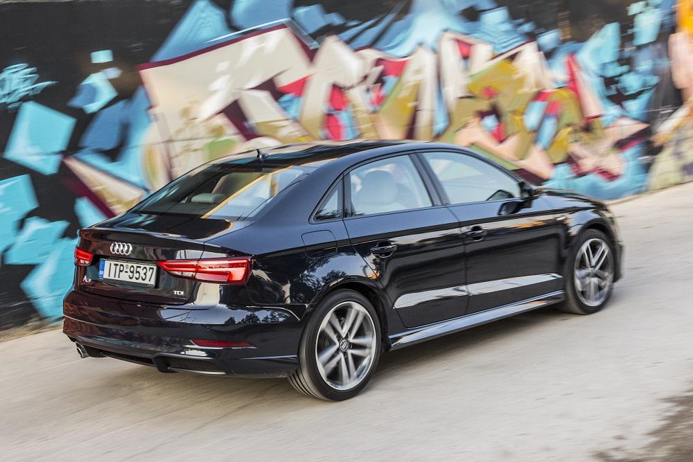 Στην πράξη, ο κινητήρας των 116 ίππων και των 250 Nm ροπής στις 1.500 σ.α.λ., κινεί ικανοποιητικά το αμάξωμα του Α3. Η Audi ανακοινώνει επιτάχυνση 0-100 χ.α.ώ. σε 10,4’’ και τελική 205 χ.α.ώ. τιμές τουλάχιστον αξιοπρεπείς. Σε συνδυασμό με το εξαιρετικό αυτόματο κιβώτιο διπλού συμπλέκτη 7 σχέσεων, η οδήγηση του γερμανικού sedan είναι πιο ευχάριστη απ’ ότι θα περίμενες. Εντάξει, το τιμόνι έχει μια πιο ελαφριά αίσθηση απ’ ότι ιδανικά θα ήθελες, αλλά μιλάμε για λεπτομέρειες. Η συγκεκριμένη έκδοση δεν προορίζεται για ανάβαση σε υπερειδικές, αλλά για ξεκούραστες μετακινήσεις εντός και εκτός πόλης. Και εκεί τα καταφέρνει μια χαρά. Στην πόλη αποδεικνύεται άνετο, με καλή ηχομόνωση και ιδιαίτερα οικονομικό. Στο ταξίδι, θα εκτιμήσεις την ποιότητα κύλισης και την σταθερότητα, απόρροια του στιβαρού πλαισίου και της ρύθμισης των αναρτήσεων.