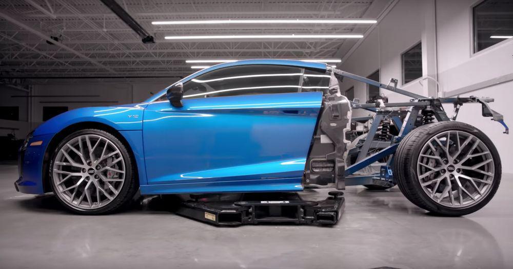 Η εικόνα μπορεί να φαίνεται ψεύτικη με μια πρώτη ματιά, αλλά είναι αληθινή. Το πίσω μέρος του R8, συμπεριλαμβανομένου του κινητήρα, έχει “λυθεί”. Κάθε εξάρτημα φωτογραφήθηκε ξεχωριστά σε μαύρο φόντο και -με την βοήθεια του Photoshop- τοποθετούνται προσεκτικά στην εικόνα, ώστε να δώσουν την αίσθηση της “έκρηξης”.