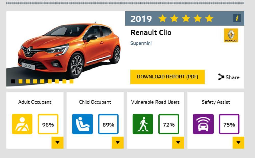 Τέλος, το νέο Renault Cliο “πέρασε με άριστα”, καθώς βαθμολογήθηκε με 96% στην ασφάλεια επιβατών, 89% στην ασφάλεια των επιβατών-παιδιών, 72% στην ασφάλεια των πεζών και 75% για τα συστήματα ασφαλείας του.