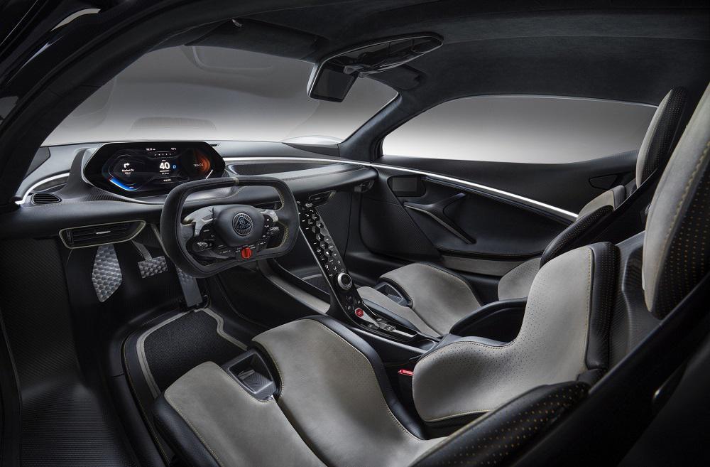 Όταν οι αγοραστές ανοίξουν τις πόρτες (προς τα πάνω), βρίσκουν μία φουτουριστική καμπίνα, με τον πίνακα οργάνων να δίνει την αίσθηση ότι αιωρείται. Το τιμόνι διαθέτει κουμπιά για όλες τις λειτουργίες, όπως τα φλας και τον επιλογέα Drive Mode. Τα καθίσματα είναι φτιαγμένα από ανθρακόνημα, ενώ προαιρετικά μπορούν να εξοπλιστούν με αγωνιστικές ζώνες τεσσάρων σημείων.