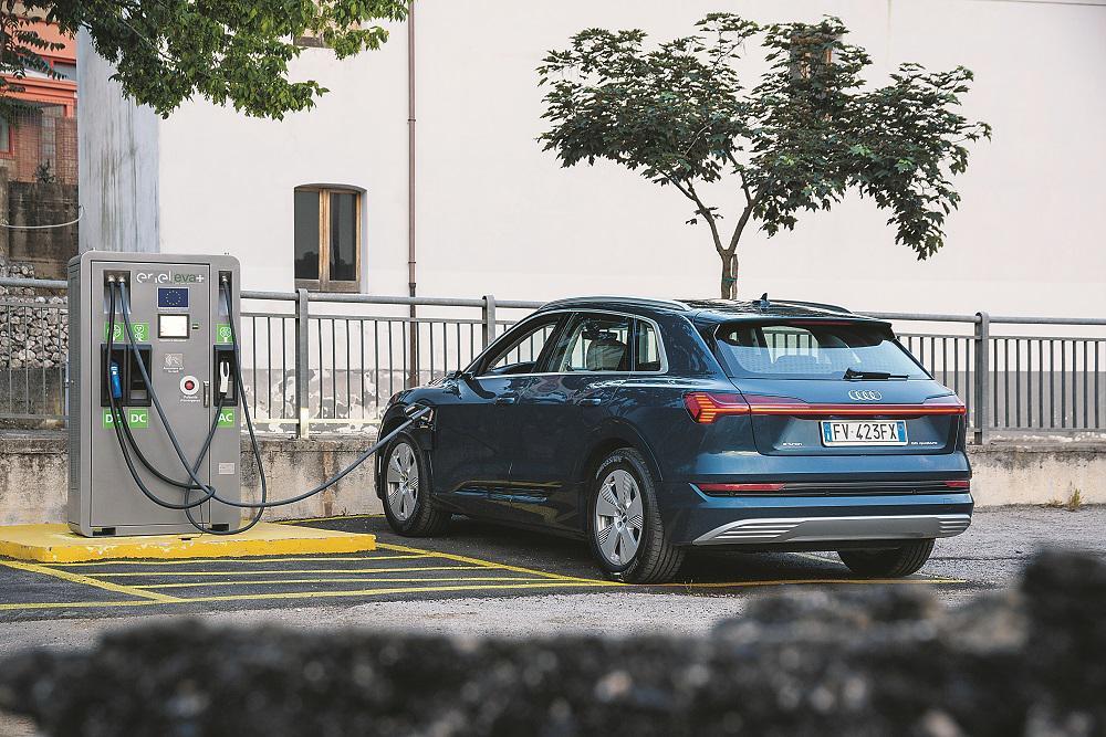 Πρώτη στάση λοιπόν στα περίχωρα της Κοσέντσα μετά από 180 χλμ. περίπου σε ένα σταθμό φόρτισης εναλλασσόμενου ρεύματος, δεδομένου ότι ο μόνος ταχυφορτιστής ήταν ανενεργός λόγω συντήρησης. Με το σύστημα του Audi να δέχεται μόνο 11 kW, αρχίζει να τρέχει κρύος ιδρώτας στο μέτωπο όταν αντιλαμβάνομαι ότι τέτοιου είδους φορτιστής επαρκεί μόνο νυχτερινή φόρτιση ή για περιπτώσεις έκτακτης ανάγκης. Αναγκάζομαι να περιμένω τρεις ολόκληρες ώρες για να φορτίσω την μπαταρία για 100 χιλιόμετρα, τα οποία χρειάζομαι για να καλύψω τα 260 χιλιόμετρα του δεύτερου σκέλους που θα με φέρει στο Φισιάνο, στα περίχωρα του Σαλέρνο, όπου έχω κλείσει ραντεβού με ένα ταχυφορτιστή Enel X. Θα αποδειχτεί η πιο δύσκολη διαδρομή όλου του ταξιδιού διότι έχω μετρημένα χιλιόμετρα αυτονομίας και ταυτόχρονα πρέπει να διασχίσω δύο εθνικούς δρυμούς, του Πολίνο και του Τσιλέντρο, με υψομετρικές διαφορές στη διαδρομή που δοκιμάζουν στο έπακρο την αυτονομία. Εδώ λοιπόν αποφασίζω να οδηγήσω οικονομικά: με μέγιστη ανάκτηση ενέργειας στις κατηφόρες και πολύ απαλή χρήση του δεξιού πεντάλ στις ανηφόρες. Φτάνω λοιπόν στον προορισμό μου με κατανάλωση – ρεκόρ 20,4 kWh/100 χλμ. Μετά την ταχεία φόρτιση ελέγχω τον υπολογιστή ταξιδιού και η αυτονομία είναι στα 383 χιλιόμετρα. Η συγκεκριμένη στάση δεν έχει φορτίσει μόνο τις μπαταρίες του Audi αλλά και τις δικές μου. Η αναμονή μάλιστα ήταν αποδεκτή και γνωρίζω πλέον ότι το δίκτυο θα είναι όλο και καλύτερο όσο προχωρώ.