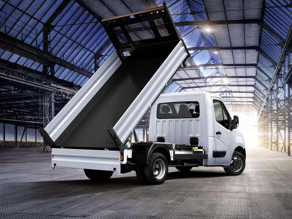 Μέγιστο μικτό βάρος 3,5 ή 4,5 Τ, εμπρόσθια (FWD) ή πίσω κίνηση (RWD), μονά ή διπλά ελαστικά – οι επιλογές αυτές διατίθενται επίσης για Movano σε έκδοση tipper (ανατρεπόμενο), dropside (με ανοιγόμενα πλαϊνά τμήματα) και van κλειστού τύπου. Το Movano tipper, που μπορεί να παραγγελθεί με τιμή εκκίνησης από 33.525€2, περιλαμβάνει στον στάνταρ εξοπλισμό του αλουμινένια πλαϊνά τοιχώματα ύψους 40 cm στο χώρο φόρτωσης, γαλβανισμένο εν θερμώ ατσάλινο πάτωμα φόρτωσης, και μία ηλεκτρική διεπαφή για την περίπτωση πρόσθετων μετατροπών. Η καρότσα είναι ανατρεπόμενη προς τα πίσω, ενώ διατίθεται και ανατρεπόμενη καρότσα προς τρεις κατευθύνσεις. Το Movano dropside (από 31.575€2) διατίθεται με αλουμινένια πλαϊνά τοιχώματα και αντιολισθητικό ξύλινο πάτωμα στο χώρο φόρτωσης με κρίκους πρόσδεσης για την ασφάλιση των φορτίων.