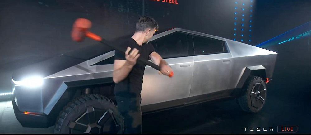 Επίσης, κατά την παρουσίαση, ο Musk έβαλε υπαλλήλους της εταιρείας να “διαλύσουν” το Cybertruck με βαριοπούλες και να ρίξουν σιδερένιες μπάλες στα παράθυρα. Αυτό το έκανε για να αποδείξει πόσο “σκληρό” είναι το νέο αυτοκίνητο. Το σώμα του αυτοκινήτου άντεξε την επίθεση, αλλά αυτό δεν συνέβη με τα παράθυρα, τα οποία υπέκυψαν.