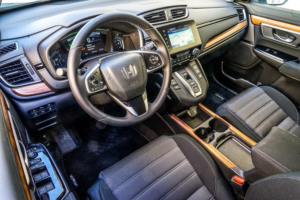 Το εσωτερικό του CR-V είναι ευρύχωρο και εργονομικά άρτιο, αλλά τα υλικά που έχουν χρησιμοποιηθεί στην επένδυση της καμπίνας προκαλούν …ανάμεικτα συναισθήματα, γιατί ναι μεν το φινίρισμα είναι πολύ καλό, όμως κάποια από τα υλικά (για παράδειγμα η απομίμηση ξύλου στην κονσόλα και τα σημεία όπου έχει χρησιμοποιηθεί «σκληρό» πλαστικό) είναι απλώς ικανοποιητικά. Το κάθισμα είναι ιδιαίτερα άνετο, ρυθμίζεται με απόλυτη ακρίβεια και η ψηλή, εποπτική θέση οδήγησης είναι η αναμενόμενη ενός SUV. Ο ψηφιακός πίνακας οργάνων διαθέτει πληθώρα ρυθμίσεων και λειτουργιών, παρέχοντας όλες τις πληροφορίες που μπορεί να χρειαστεί ο οδηγός.
