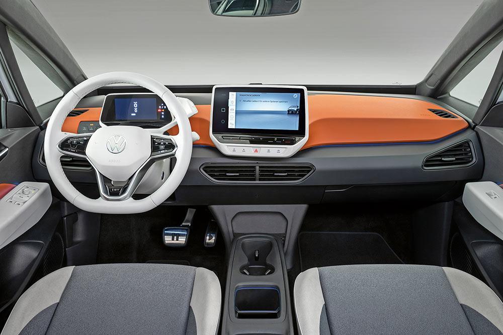Οι τεχνικοί της VW υπογραμμίζουν ότι οποιοδήποτε έξτρα στοιχείο, ακόμη και χαμηλής αξίας όπως ένα πλαστικό ντουλάπι σε στιλ 911, αυξάνει το κόστος, το οποίο στο Βόλφσμπουργκ θέλουν πάση θυσία να κρατήσουν κάτω από τις 30.000 ευρώ. Κατά συνέπεια, η εξοικονόμηση χρημάτων γίνεται παντού αντιληπτή. Το ID.3 διαθέτει οικονομικές λύσεις σωστά μελετημένες, τις οποίες όμως θα προσέξει το εκπαιδευμένο μάτι ενός φανατικού των αυτοκινήτων. Για παράδειγμα, μόνο το κεντρικό πάνελ του ταμπλό είναι επενδυμένο με μαλακό πλαστικό και μπορεί να παραγγελθεί σε διάφορα χρώματα. Η κεντρική κονσόλα μάλιστα δεν αποτελεί συνέχεια του ταμπλό με αποτέλεσμα να υπάρχει ένα κενό όπου μπορούν να χαθούν κάποια μικροαντικείμενα. Πολυάριθμες αντίθετα είναι οι θήκες και οι παροχές φόρτισης, με τέσσερις συνολικά USB-C ανάμεσά τους. Το ID.3 διαθέτει δύο οθόνες: το μικρό πίνακα οργάνων που ανεβοκατεβαίνει με το λαιμό του τιμονιού και μία οθόνη αφής 10” για το σύστημα πολυμέσων, η οποία ενημερώνεται αυτόματα “over the air”, όπως λέμε. Άλλα σημεία στα οποία έχει γίνει οικονομία; Τα ταμπούρα στα πίσω φρένα για παράδειγμα, τα οποία όμως, σύμφωνα με τους τεχνικούς, υπερεπαρκούν για να φρενάρουν αποτελεσματικά τα 1719 κιλά του ID.3.