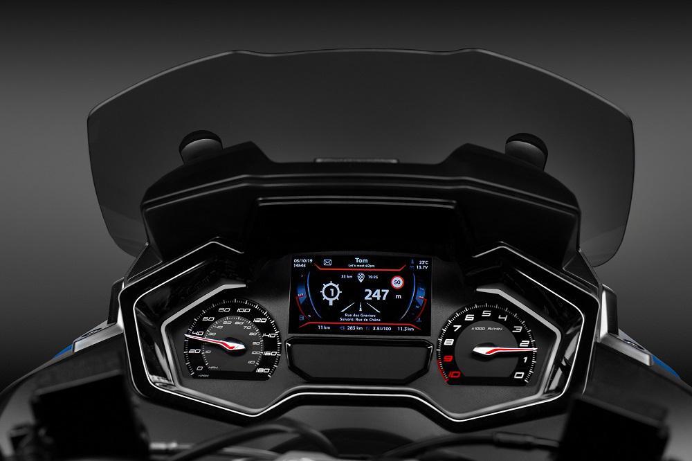 - Το τρίγωνο “αναβάτη – σκούτερ – πίνακα οργάνων” βελτιστοποιήθηκε μεταξύ άλλων, χάρη στο καμπυλωτό τιμόνι που επιτρέπει μείωση των κινήσεων. Η εργονομία ενισχύει την ταχύτητα και την ευελιξία, προσφέροντας μια πιο χαλαρή θέση οδήγησης.