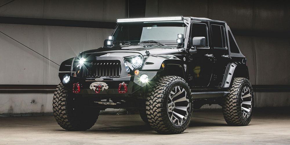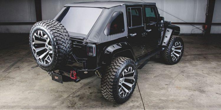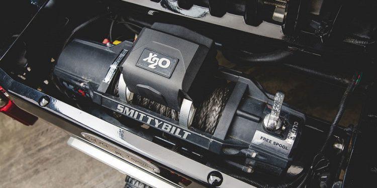 Είναι χαρακτηριστικό, πως αυτό το Wrangler εφοδιάζεται μπροστά με ένα βαρούλκο της Smittybilt. Κατά τα άλλα, το αμερικανικό μοντέλο φέρει μεγαλύτερους θόλους μπροστινών τροχών, ενώ οι πόρτες ανοίγουν και κλείνουν με τη βοήθεια ηλεκτρικού μηχανισμού. Όσο για τα φώτα, πρόκειται για τέσσερις τεράστιους προβολείς LED, αλλά και ακόμα ένα κατά πολύ μεγαλύτερο με διάμετρο 50 ιντσών(!), τα οποία προέρχονται από την ειδική στο είδος εταιρεία DB Link.