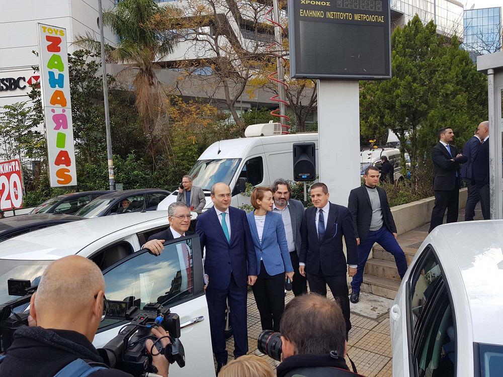 Σε εκδήλωση, παρουσία του Υπουργού Περιβάλλοντος και Ενέργεια κυρίου Κωστή Χατζηδάκη, παρουσιάστηκαν σήμερα οι πράσινες δράσεις του υπουργείου, με την παραλαβή των πρώτων ηλεκτρικών αυτοκινήτων, στην κατεύθυνση της προώθηση της ηλεκτροκίνησης στο δημόσιο.