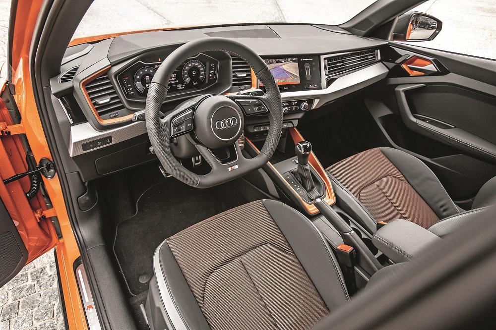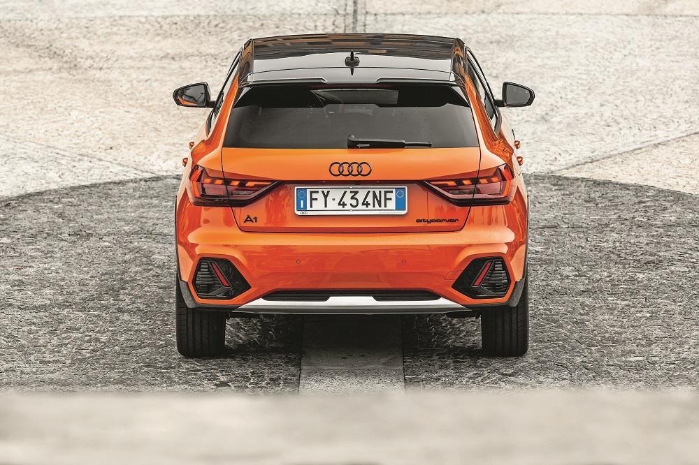 Σε σχέση με το A1 Sportback έχει ψηλώσει και μάλιστα αρκετά. Πέντε εκατοστά, συγκεκριμένα, και αυτό κάνει τη διαφορά όταν μπεις στην καμπίνα χωρίς να χρειαστεί να χαμηλώσεις το σώμα σου. Το κάθισμα είναι εκεί, στο ύψος του και αυτό προσθέτει περισσότερη άνεση. Ο εσωτερικός διάκοσμος είναι ο γνώριμος των Audi με λίγο παραπάνω χρώμα στη συγκεκριμένη έκδοση της δοκιμής μας. Όσο για την εξωτερική εμφάνιση, το A1 Citycarver δεν περνά απαρατήρητο, είτε λόγω του έντονου πορτοκαλί Pulse χρώματος (η έκδοση Edition One διατίθεται σ’ αυτό και στο γκρι Manhattan αποκλειστικά), είτε λόγω των φουσκωμένων θόλων και το μαύρου χρώματος σε μασπιέ και οροφή.
