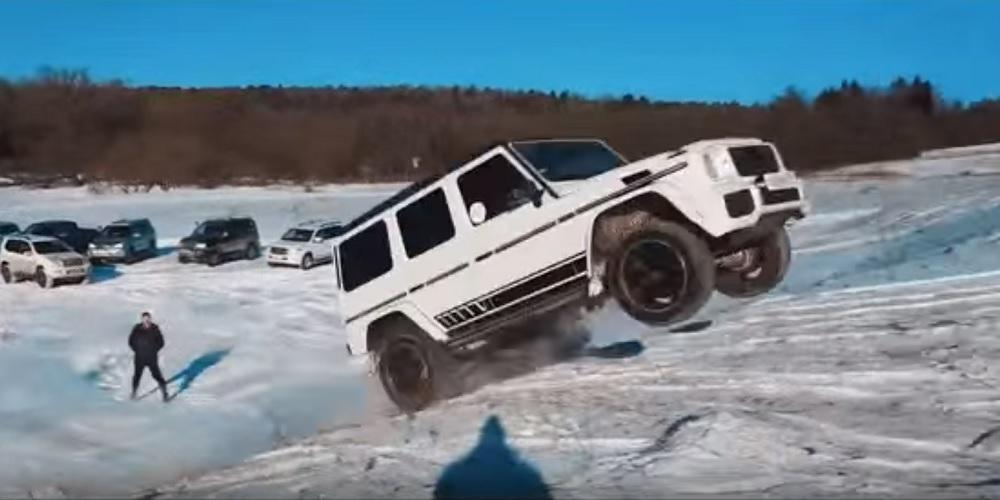 Όμως, το Γερμανικό G είναι απίστευτα ικανό εκτός δρόμου. Το παρακάτω βίντεο, του καναλιού Strelaification, έχει γυριστεί κάπου στην Ρωσία, και ξεκινά δείχνοντας δύο G63 να “κοντράρονται” σε έναν χιονισμένο λόφο, με το λευκό G63 να φεύγει …πετώντας! Ο συγκεκριμένος οδηγός φαίνεται αποφασισμένος να νικήσει, χωρίς να τον νοιάζει αν θα προκαλέσει ζημιές στο αυτοκίνητο του. Ο οδηγός του μαύρου SUV έχει μια πιο ήρεμη προσέγγιση, ανεβαίνοντας επίσης με σχετική άνεση τον λόφο.
