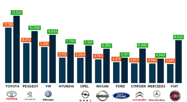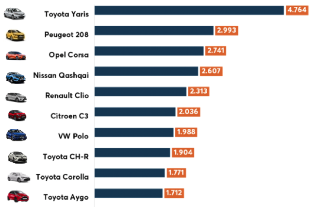 Είναι χαρακτηριστικό ότι 4 μοντέλα της Toyota βρίσκονται στην κορυφαία δεκάδα πωλήσεων στην χώρα μας.