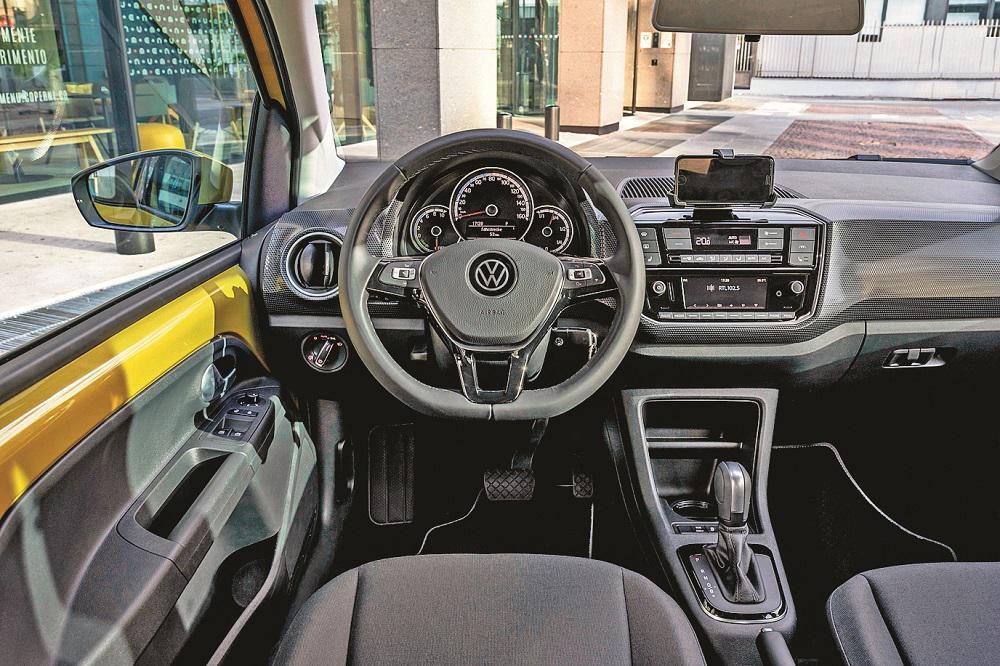 Το e-up! είναι ευρύχωρο και καλοφτιαγμένο και μπορεί να φιλοξενήσει έως και τέσσερις ενήλικες επιβάτες. Δεν λείπει φυσικά από την κεντρική κονσόλα η ειδική θέση όπου προσαρμόζεται το smartphone και αυτό, με την ειδική εφαρμογή της VW, μετατρέπεται σε σύστημα infotainment, πλοήγησης και on-board computer.
