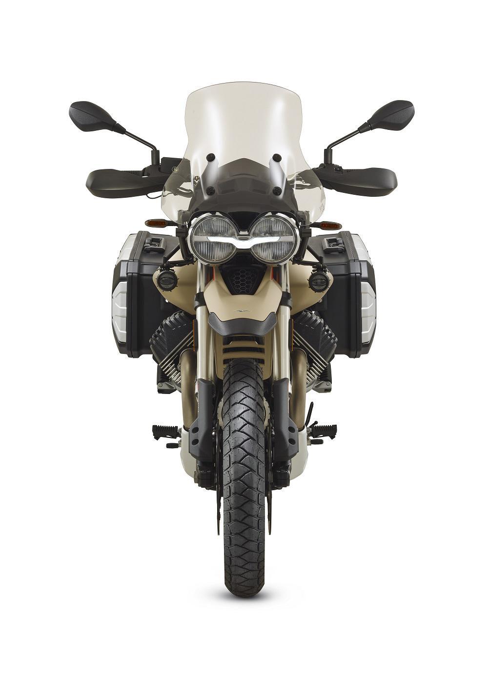 Η Moto Guzzi V85 TT αντικατοπτρίζει μια φιλοσοφία κατασκευής στην οποία o ουσιώδης χαρακτήρας, η λειτουργικότητα και η ευκολία χρήσης καθορίζουν μια απρόσκοπτη σχέση μεταξύ μοτοσυκλέτας και αναβάτη, ενώ είναι αφιερωμένη σε περιπετειώδη ταξίδια, διαχρονική κληρονομιά της Moto Guzzi, και εκεί είναι που δίνει ακόμα μεγαλύτερη έμφαση η έκδοση Travel. Ο εξοπλισμός, που αποτελείται από ήδη διαθέσιμα γνήσια αξεσουάρ, περιλαμβάνει καταρχήν τον ψηλότερο ανεμοθώρακα Touring, για μεγαλύτερη προστασία από τον αέρα, χάρη στην κατά 60% μεγαλύτερη επιφάνειά του σε σχέση με εκείνον της βασικής έκδοσης. Επιπλέον διαθέτει ένα ζεύγος πλαϊνές βαλίτσες από πλαστικό με ένθετα αλουμινίου, μεγάλης χωρητικότητας (η δεξιά 37 λίτρα, χωράει ένα full-face κράνος, και η αριστερή 27,5 λίτρα), που χρησιμοποιούν το ίδιο κλειδί με τη μοτοσυκλέτα. Για την εγκατάστασή τους δεν απαιτούνται ογκώδη στηρίγματα, αφήνοντας ανέπαφες τις γραμμές του οχήματος όταν αφαιρεθούν. Οι πλευρικές διαστάσεις τους περιορίζονται στα 928 χιλ., καθώς σχεδιάστηκαν ταυτόχρονα με την ανάπτυξη της ίδιας της μοτοσυκλέτας.