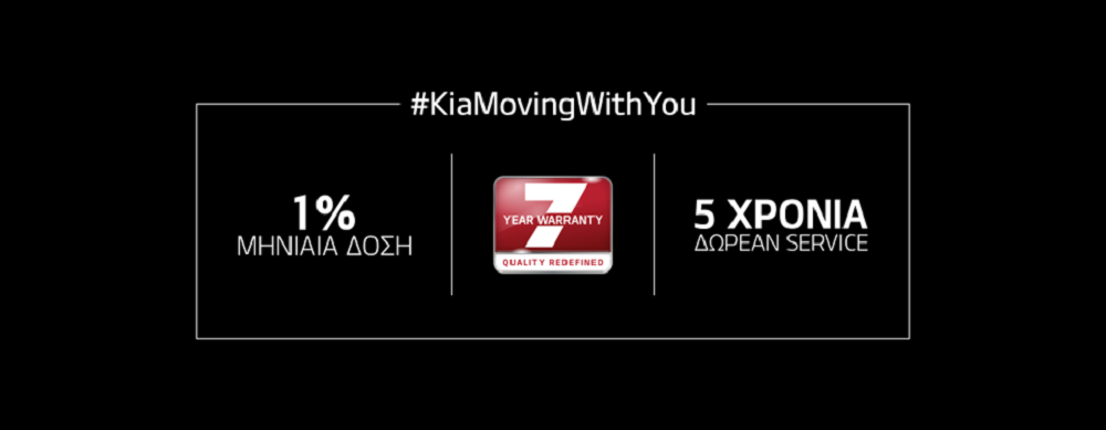 Το νέο πρόγραμμα περιλαμβάνει ευέλικτα χρηματοδοτικά προγράμματα με προκαταβολή από 30% και αποπληρωμή έως 84 μήνες, προσφέροντας χαμηλή μηνιαία δόση 1% της αξίας του αυτοκινήτου. Επίσης περιλαμβάνει την 7ετή – μοναδική στο χώρο της αυτοκίνησης – εργοστασιακή εγγύηση Kia καθώς και 5 χρόνια προνομιακό Δωρεάν Service.