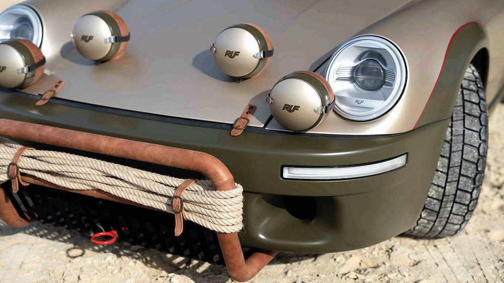 Το αμάξωμα από φύλλα ανθρακονημάτων μοιράζεται το Rodeo Concept με τα Ruf Anniversary και Ruf SCR. Προκειμένου το νέο μοντέλο να μπορεί να ανταπεξέρχεται στις εκτός δρόμου αποστολές του, εφοδιάζεται με σύστημα τετρακίνησης, του οποίου η κατανομή της ροπής γίνεται δυνατή από πλευράς οδηγού με τη χρήση του περιστροφικού διακόπτη (κάτω) στην κεντρική κονσόλα. Επιπλέον, υπάρχουν μεγαλύτερες διαδρομές των ελατηρίων συν αυξημένη απόσταση του αμαξώματος από το έδαφος, καθώς και τροχοί μεγαλύτερων διαστάσεων, που φέρουν ελαστικά με off-road πέλμα της Michelin. Πίσω, δε, από τους τροχούς βρίσκονται μεγάλοι λασπωτήρες.
