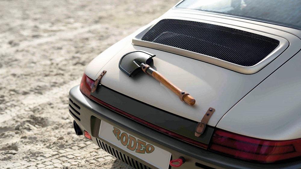 Το Rodeo Concept εφοδιάζεται στην πρόσοψη με μία τεράστια μπάρα, που έχει τα χρώματα της σκουριάς, ένα τυλιγμένο λάσο και ένα προστατευτικό πλέγμα. Και, όπως συνηθίζεται στους αγώνες rallye, το μπροστινό εφοδιάζεται με τέσσερα πρόσθετα φωτιστικά σώματα. Επιπλέον φωτιστικά σώματα έχουν τοποθετηθεί και στη σχάρα οροφής. Δερμάτινοι ιμάντες εξασφαλίζουν πως τα καπό εμπρός και πίσω δε θα ανοίγουν. Πάνω στο καπό του κινητήρα (πίσω, φυσικά) είναι τοποθετημένο ένα φτυάρι, γιατί… ποιος ξέρει;