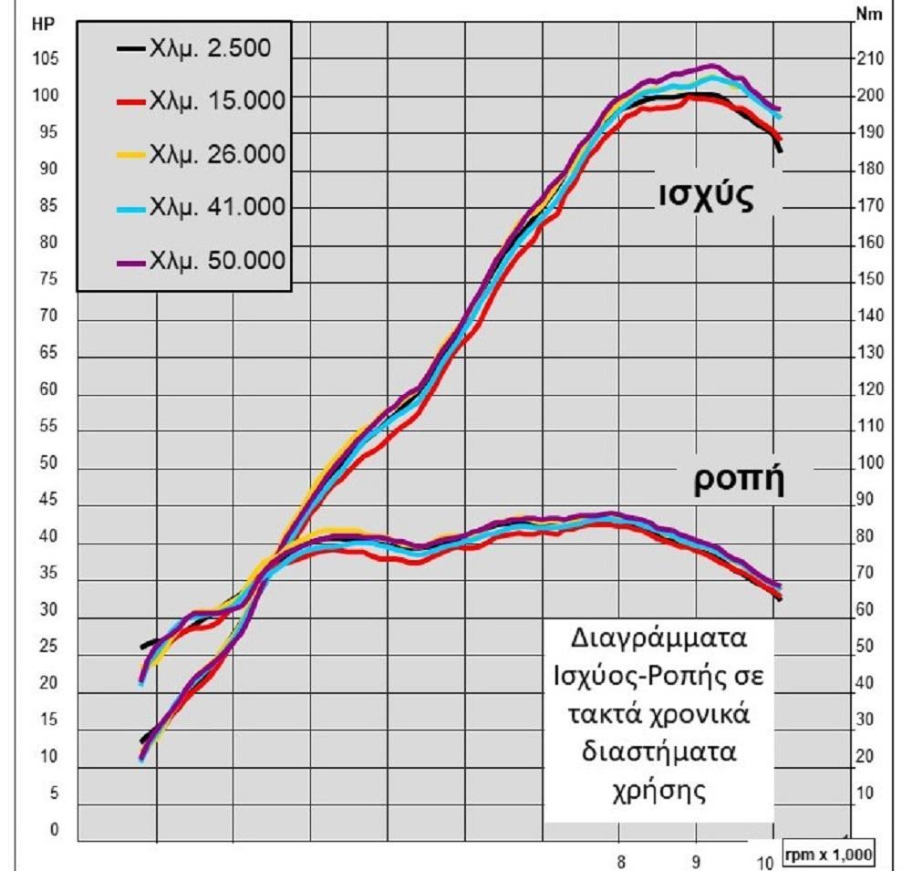 Τα παραπάνω οπτικά δεδομένα επιβεβαιώθηκαν στη δυναμομέτρηση που ακολούθησε στο εργαστήριο, με τα αποτελέσματα για τον κινητήρα ακόμα πιο εντυπωσιακά: στο διάστημα της δοκιμής είχε κερδίσει 4 ίππους ενώ και τα διαγράμματα ροπής ήταν καλύτερα σε σχέση με τα αντίστοιχα στην έναρξη της δοκιμής! Παράλληλα, η κατανάλωση λαδιού ήταν μηδενική, επιβεβαιώνοντας την οπτική εντύπωση της απουσίας υπολειμμάτων στο περίβλημα του κινητήρα.