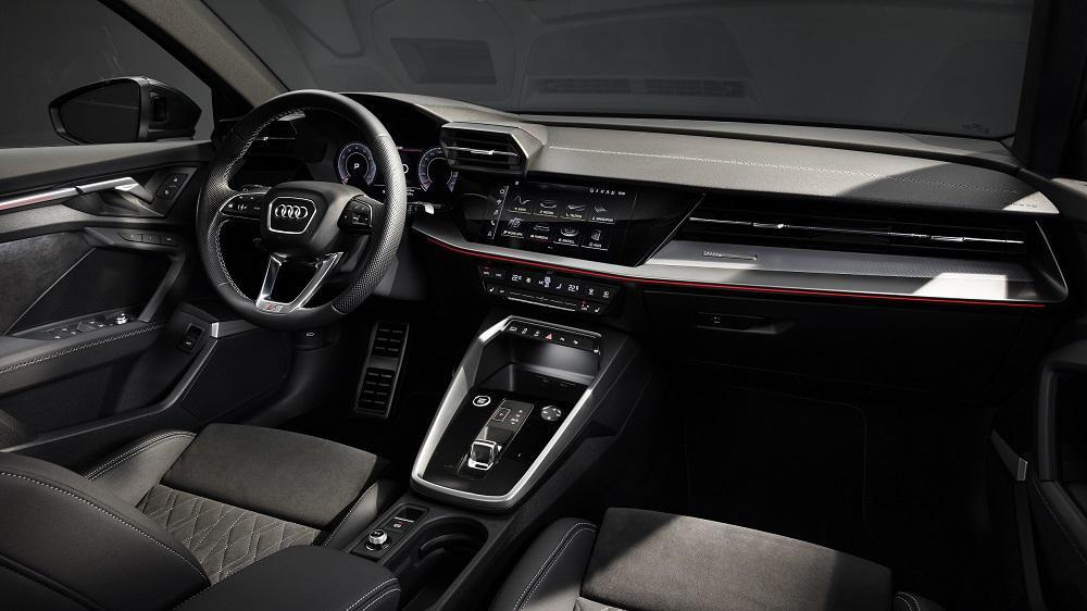 Το πιλοτήριο του A3 Sedan εστιάζει αποκλειστικά στον οδηγό, με το ταμπλό και την κεντρική οθόνη αφής MMI να έχουν κλίση ελαφρώς προς αυτόν. Η οθόνη ΜΜΙ έχει διαγώνιο 10,1 ιντσών και είναι διαισθητική στη λειτουργία. Ως στάνταρ, περιλαμβάνει κατανόηση χειρόγραφου τρόπου αναζήτησης καθώς και έλεγχο φυσικής γλώσσας που προαιρετικά αξιοποιεί τις δυνατότητες του cloud. Το Audi virtual cockpit, σε διάσταση 10,25 ιντσών είναι στάνταρ και στη βασική έκδοση, παρέχοντας κορυφαία ψηφιακή εμπειρία στον οδηγό. Στο μεγαλύτερο Audi virtual cockpit plus, με διάσταση 12,3 ίντσες, προσφέρεται επιλογή από τρεις διαφορετικές προβολές, συμπεριλαμβανομένων σπορ γραφικών με ιδιαίτερα δυναμική διάταξη. Εδώ, οι στροφές RPM και η ταχύτητα εμφανίζονται ως διαγράμματα ράβδων με κόκκινα γραφικά στοιχεία. Προαιρετικά, διαθέσιμο και head-up display για πιο άμεση πληροφόρηση στο παρμπρίζ.