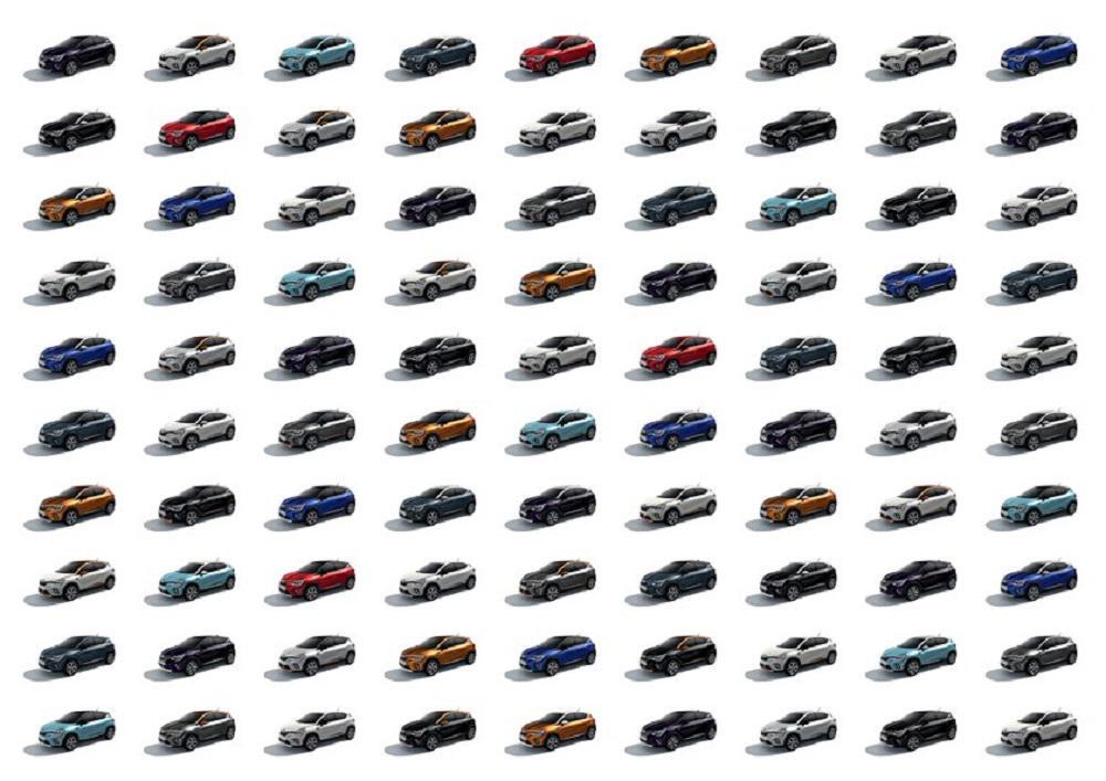 Πάνω από 11 χρώματα για το αμάξωμα και 5 επιλογές για την οροφή και τους πλευρικούς καθρέφτες, είναι διαθέσιμα, ενώ τώρα προσφέρονται 3 ακόμα χρωματικές επιλογές για τις εμπρός και πίσω προστατευτικές ποδιές και τα πλευρικά προστατευτικά στο κάτω μέρος των θυρών. Συνολικά, το Renault CAPTUR προσφέρεται σε πάνω από 90 συνδυασμούς εξατομίκευσης.