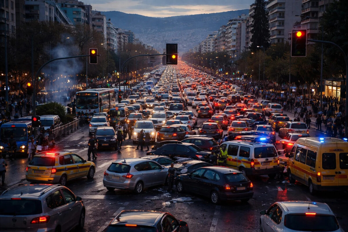 Σε λιγότερο από δέκα λεπτά, γίνεται σαφές ότι δεν πρόκειται για μεμονωμένες βλάβες. Το κεντρικό σύστημα ελέγχου κυκλοφορίας της Αθήνας έχει καταρρεύσει.