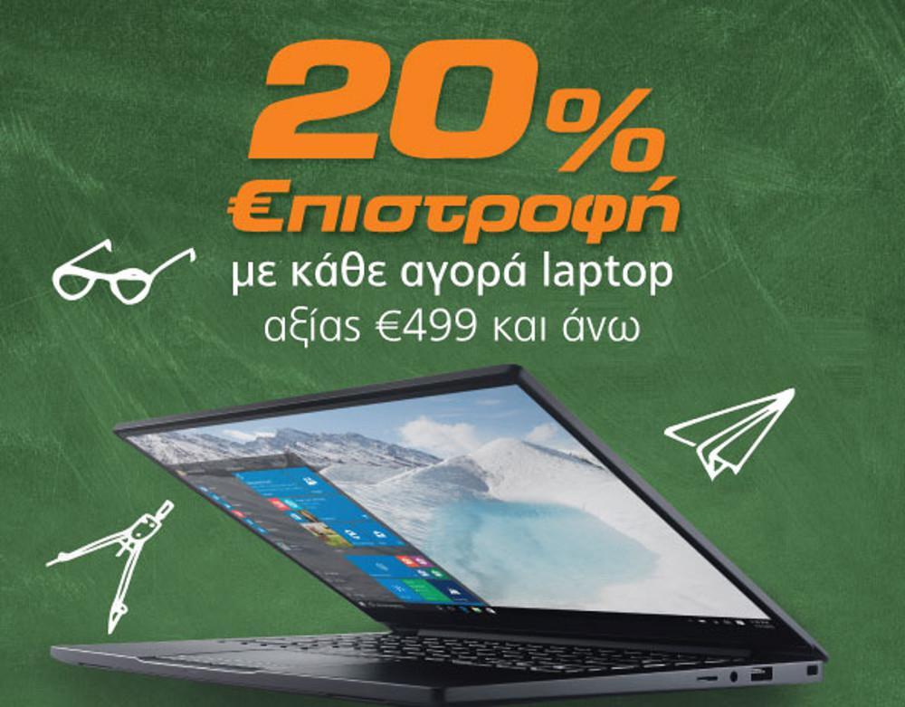 Η προωθητική ενέργεια 20% €πιστροφή σε laptops ισχύει για αγορές στα φυσικά καταστήματα Public αλλά και στο www.public.gr εφόσον η παραλαβή γίνει σε φυσικό κατάστημα Public. Περισσότερα στο http://www.public.gr/cat/corporate/synergasies/eurobank-epistrofi/