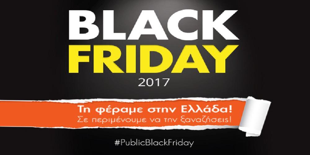 Υπηρετώντας την ευρύτερη στρατηγική της εταιρίας να προσφέρει τη μεγαλύτερη ποικιλία προϊόντων τεχνολογίας και ψυχαγωγίας, στις καλύτερες τιμές, πάντα προς όφελος των πελατών και επισκεπτών της, τον περασμένο Νοέμβριο τα Public έφεραν για πρώτη φορά στην Ελλάδα τη Black Friday, γνωστή και ως Μαύρη Παρασκευή.